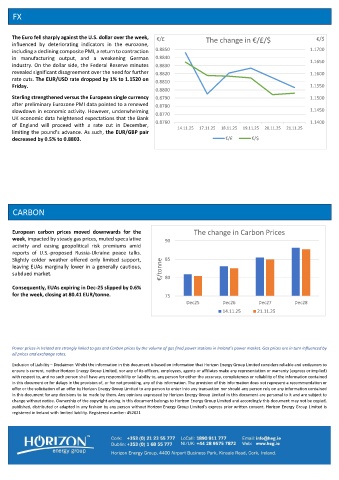 European carbon prices moved downwards for the The change in Carbon Prices